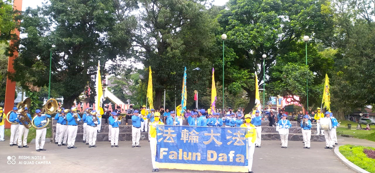 Sore harinya, Tian Guo Marching Band, barisan genderang pinggang dan barisan bidadari praktisi Dafa bergerak menuju ke Alun-Alun di pusat Kota Malang, setelah berkoordinasi dengan kepolisian dan jajaran pemerintah kota setempat. Di sana Tian Guo Marching Band maupun barisan genderang pinggang secara bergantian memainkan lagu-lagu seperti “Falun Dafa Hao (baik)” yang membawakan pesan-pesan kebaikan dan keindahan dari Falun Dafa kepada warga masyarakat yang berkunjung ke lokasi tersebut.