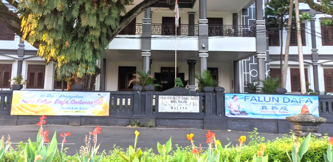 Selain di beberapa ruas jalan utama Kota Malang seperti Jalan Urip Sumoharjo, pintu masuk Lapangan Rampal, depan Stasiun Kota Baru, di Jalan Majapahit dan lainnya, puluhan spanduk bertuliskan “Hari Falun Dafa Sedunia 13 Mei – Sejati-Baik-Sabar. Olah Jiwa & Raga untuk Memurnikan Tubuh. Falundafa.org” sempat berkibar selama beberapa hari dengan izin dari Pemerintah Kota Malang.