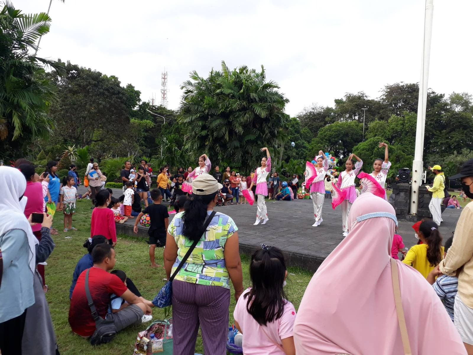 Tari kipas dikelilingi pengunjung Lapangan Puputan Badung