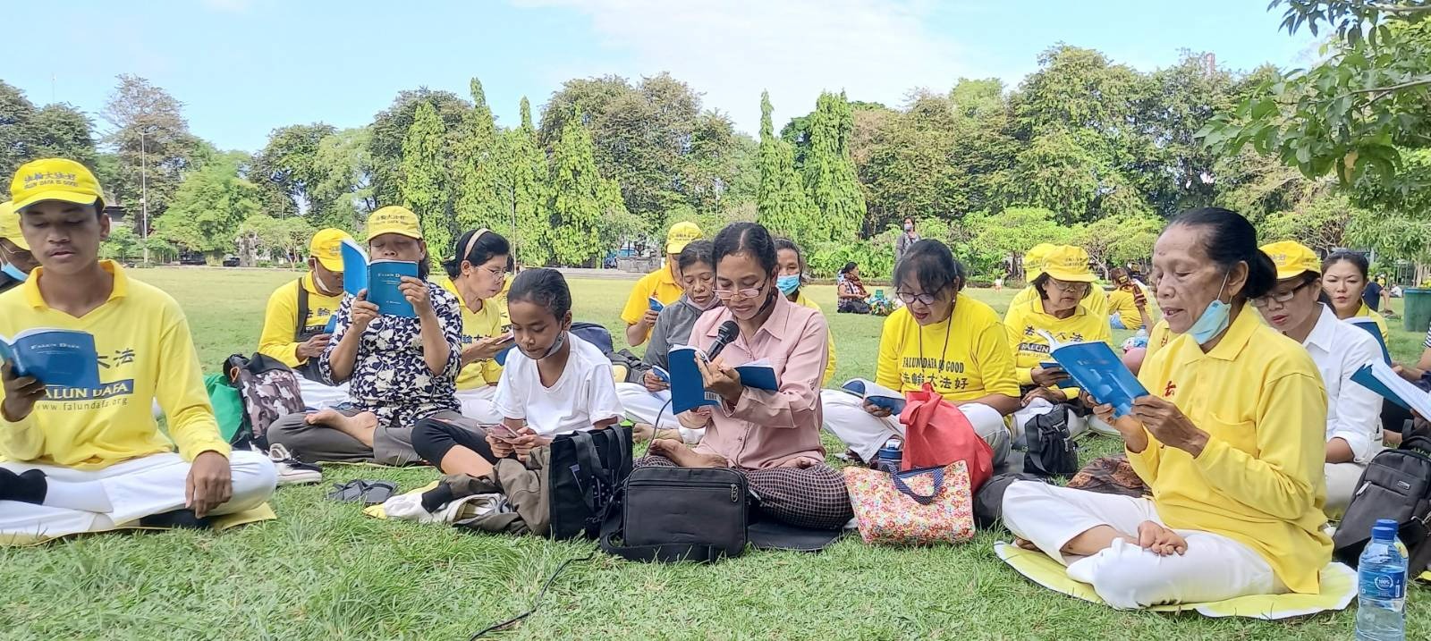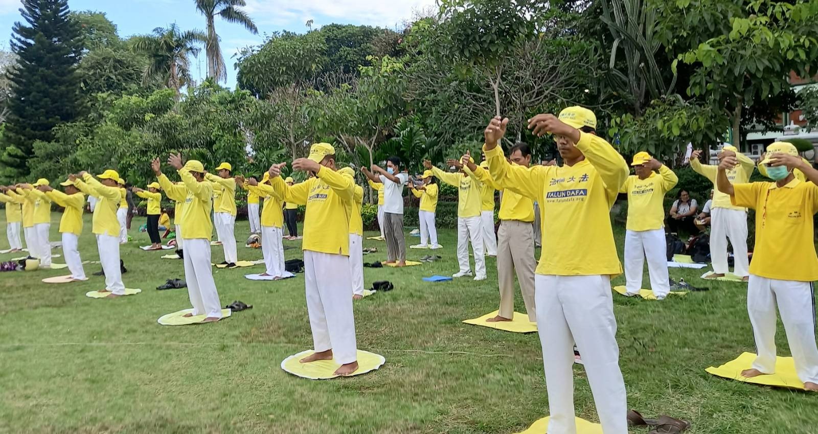 (Minghui.org) Minggu, 19 Juni 2022, praktisi Falun Dafa di Bali mengadakan kegiatan dalam rangka memperkenalkan Falun Dafa dan meningkatkan kesadaran publik akan penganiayaan Partai Komunis Tiongkok (PKT) terhadap praktisi Falun Dafa di Tiongkok. Kegiatan ini diadakan di Lapangan Puputan Badung I Gusti Ngurah Made Agung yang terletak di jantung kota Denpasar. Lapangan Puputan Badung dijadikan sebagai tempat rekreasi bagi warga kota Denpasar dan sekitarnya, sehingga banyak orang yang berkunjung setiap harinya. Kegiatan ini pertama kali diadakan kembali selama pandemi. Kegiatan sore itu diisi dengan belajar Fa bersama, melakukan lima perangkat latihan, mengumpulkan tanda tangan petisi, serta penampilan dari barisan genderang pinggang dan tarian yang dibawakan oleh praktisi muda.