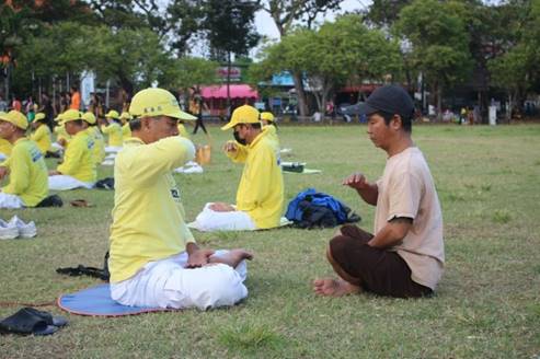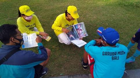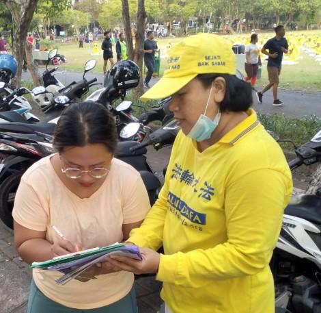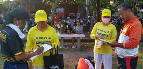(Minghui.org) Pada Minggu (17/7) ratusan praktisi dari berbagai daerah di Bali, berkumpul di Kota Denpasar untuk mengikuti rangkaian kegiatan menyerukan diakhirinya 23 Tahun penindasan Partai Komunis Tiongkok (PKT) terhadap praktisi Falun Dafa (disebut pula Falun Gong) di Tiongkok. Praktisi berupaya meningkatkan kesadaran masyarakat dengan memberikan informasi tentang Dafa dan penganiayaannya di Tiongkok, dengan harapan mereka dapat memahami fakta dan memberikan dukungan, agar penganiayaan irasional ini segera diakhiri. Acara berlangsung selama sehari dengan beberapa kegiatan diantaranya latihan bersama, pengumpulan petisi, penampilan Barisan Genderang Pinggang dan ditutup dengan nyala lilin.