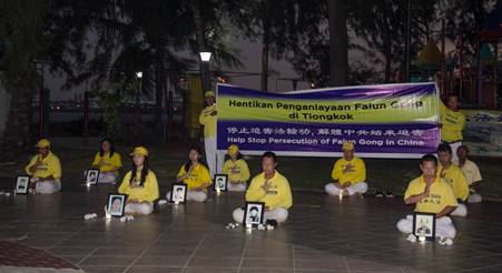 Nyala lilin di kawasan wisata Ocarina - Batam (16/7) untuk mengenang ribuan praktisi Dafa yang meninggal akibat penganiayaan yang dilakukan rezim PKT