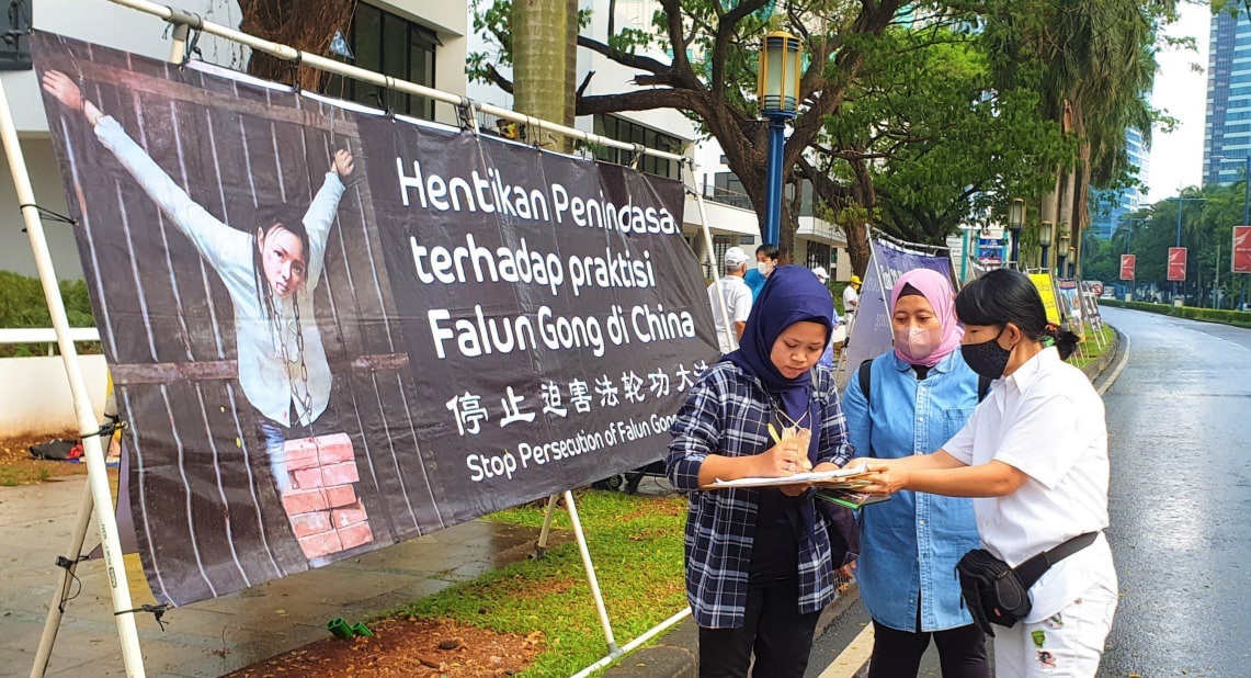 (Minghui.org) Pada sore 23 Juli 2022, praktisi Falun Dafa di Kota Jakarta maupun Surabaya secara serentak mengadakan aksi damai di depan perwakilan diplomatik Tiongkok, menyerukan agar 23 tahun penganiayaan dan genosida Partai Komunis Tiongkok (PKT) terhadap praktisi Dafa di Tiongkok segera diakhiri.