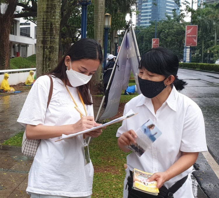 Cuaca hujan di Jakarta tidak menyurutkan para praktisi untuk mengungkapkan keprihatinan mereka terhadap penganiayaan yang masih terus berlanjut, dan menyatakan dukungan mereka bagi rekan-rekan praktisi di Tiongkok. Seorang praktisi yang mengikuti kegiatan berkata, “Kami berjalan beriringan dengan rekan-rekan kami di Tiongkok, penderitaan mereka adalah penderitaan kami pula. Partai komunis jahat telah melakukan kejahatan kemanusiaan yang tak terhitung, bila dibiarkan – di masa depan rezim ini akan menganiaya anda, karenanya kita semua perlu peduli dan bersikap.”