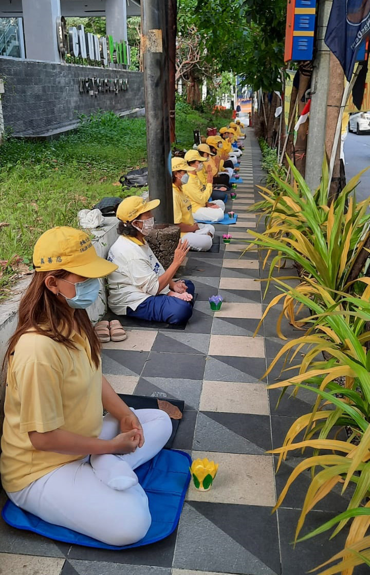 Di seberang Konjen Tiongkok di Surabaya, praktisi mengadakan aksi damai yang menyerukan penghentian penganiayaan terhadap Falun Gong di Tiongkok (23/7)