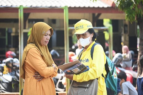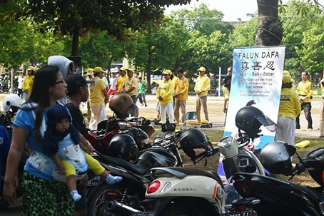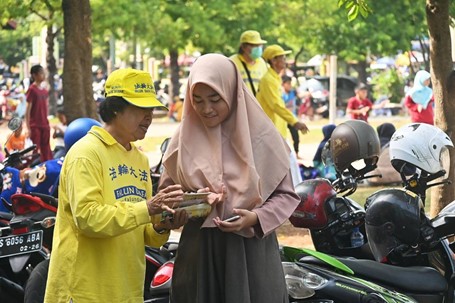 Praktisi melanjutkan, “Sejak tahun 1999, praktisi Falun Dafa di Tiongkok telah menjadi sasaran fitnahan dan penindasan kejam, bahkan organ tubuh mereka dirampas untuk memasok industri transplantasi Tiongkok yang booming. Sesungguhnya Konstitusi Tiongkok tidak ada satu pasal pun yang melarang Falun Gong, kebijakan penindasan berasal dari arahan pribadi sekjen PKT saat itu, Jiang Zemin, skandal penyalahgunaan kekuasaan terbesar yang suatu hari akan terungkap.” Praktisi kemudian berpesan agar jangan percaya propaganda kebohongan dan menjauh dari kejahatan kemanusiaan PKT. Pengunjung itu menganggukkan kepala.
