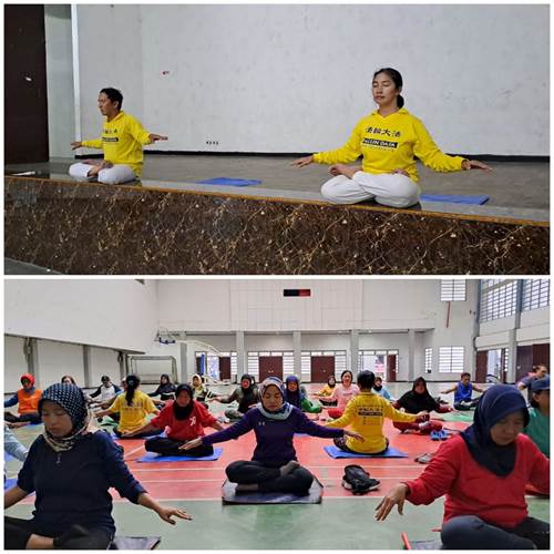 Praktisi memperkenalkan latihan Falun Dafa kepada dosen dan staf Universitas Trisakti di Jakarta (24/2)