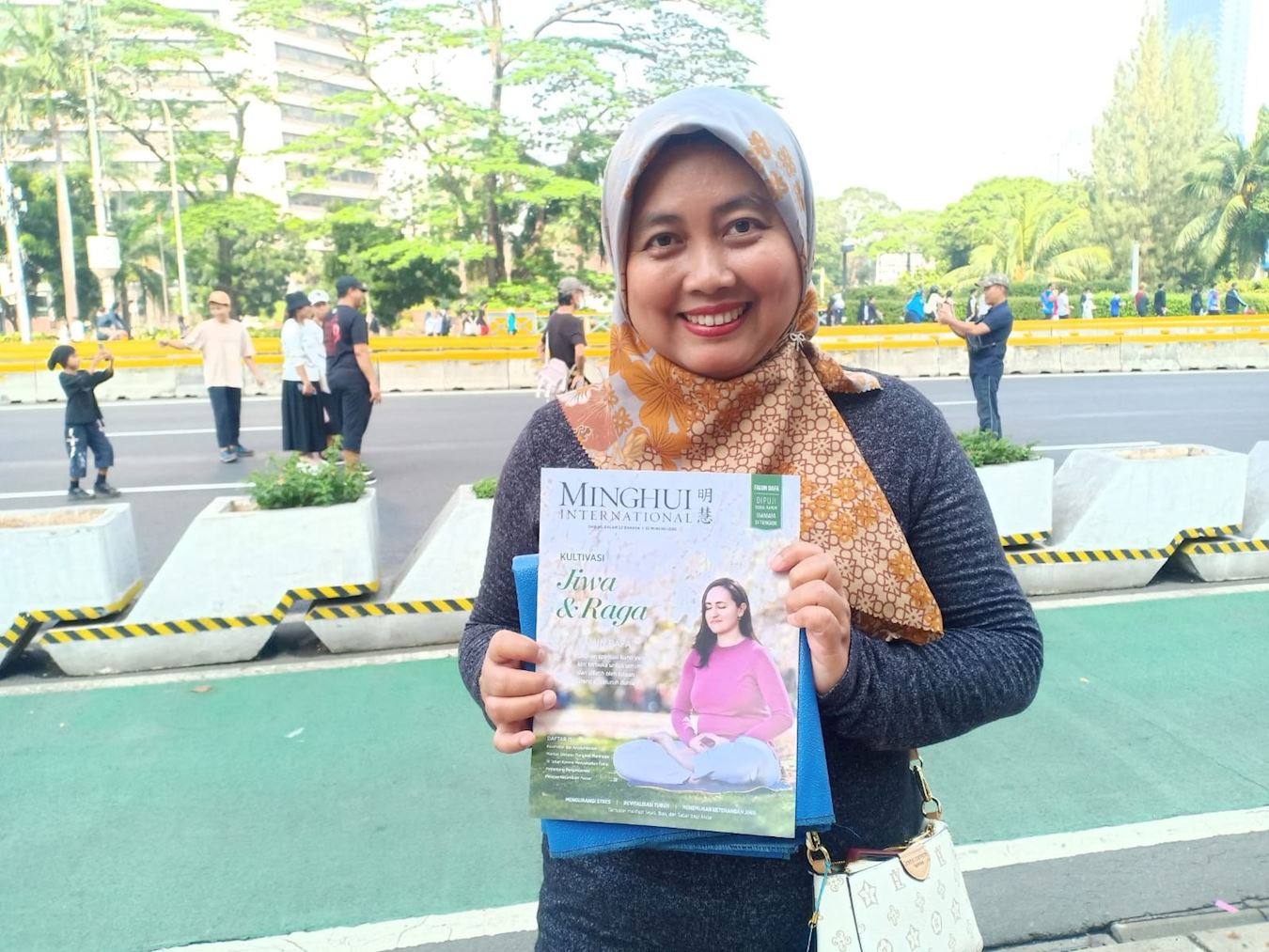 Ita, salah satu praktisi yang menjaga stan informasi Falun Dafa pagi itu, mengatakan bahwa ini pertama kalinya praktisi berpartisipasi kembali dalam acara Hari Bebas Kendaraan sejak dimulainya tahun 2024. Ita berkata, “Sama seperti tahun sebelumnya, kami di sini ingin memperkenalkan Falun Dafa kepada masyarakat Kota Jakarta dan mengungkapkan kejahatan Partai Komunis Tiongkok dalam menganiaya praktisi Falun Dafa di Tiongkok. Dan yang paling penting, kami ingin masyarakat memahami bahwa Falun Dafa baik dan Sejati-Baik-Sabar adalah baik.”
