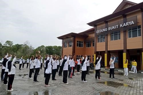 Kegiatan dilanjutkan dengan latihan bersama yang diikuti sekitar 45 anggota dan staf Satuan Polisi Pamong Praja.